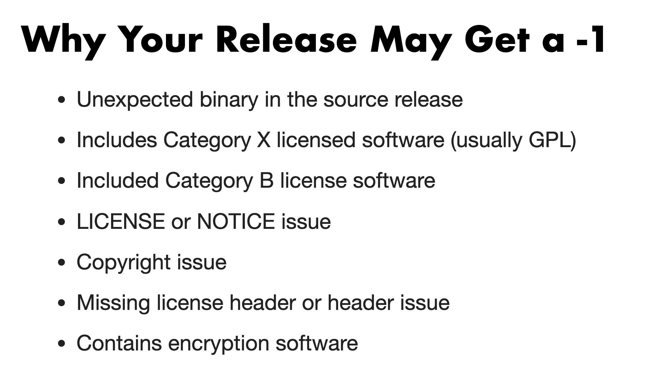 - ASF不允许的LICENSE:Category X(GPL,LGPL,CC Non commercial,etc)