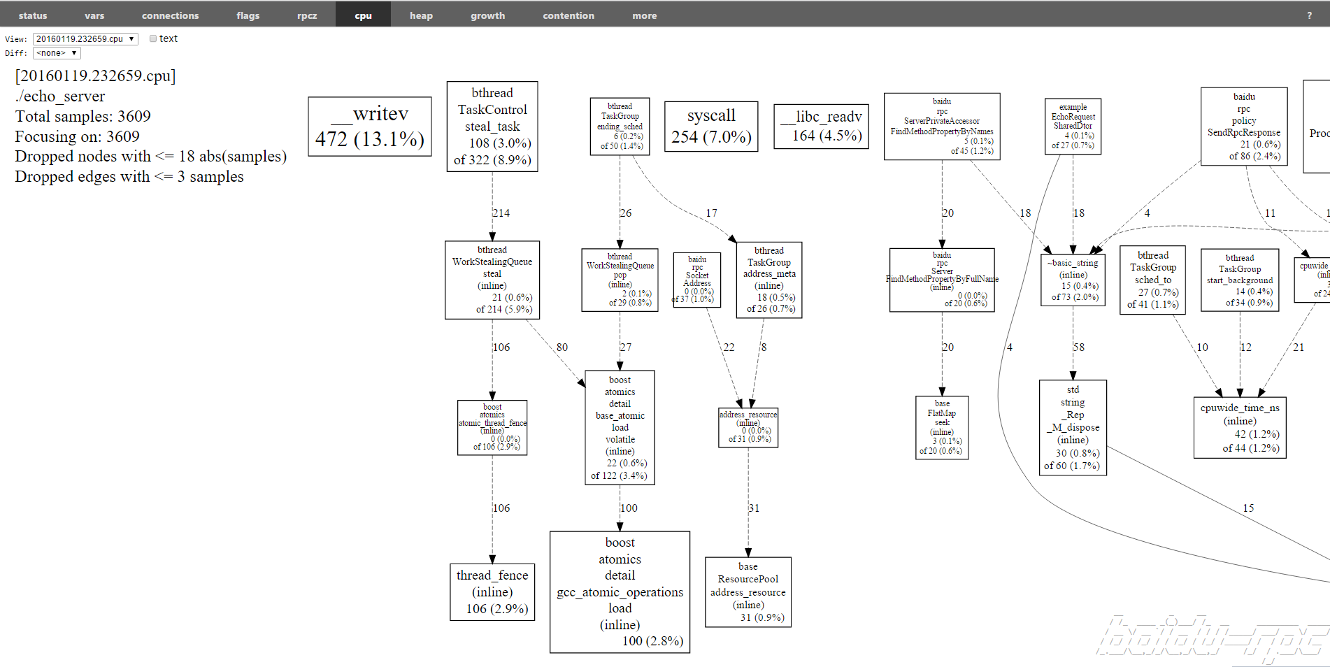 Wrote profile to /home/gejun/pprof/echo_server.1419501236.0.0.0.0