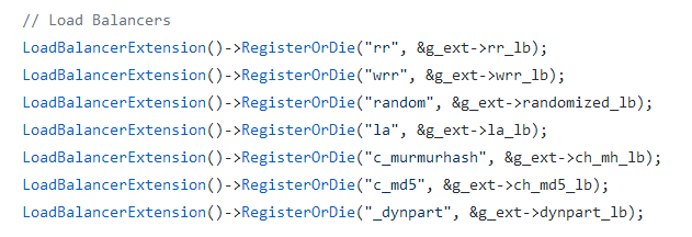 和NamingService类似我们使用字符串来指代一个load balancer在global.cpp中注册