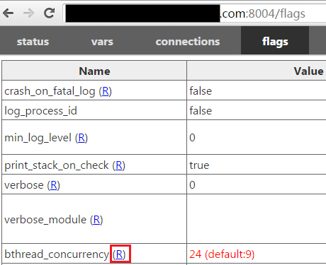 如果线程数不够,你可以尝试动态调大工作线程数,切换到/flags页面,点击bthread_concurrency右边的(R):
