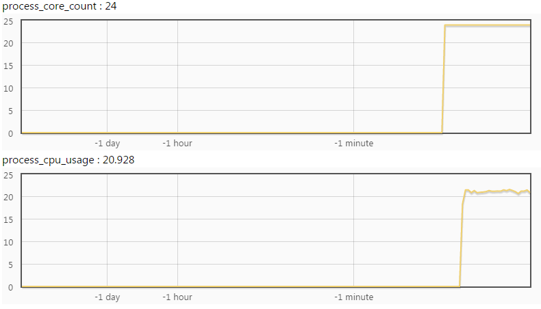查看 /vars/system_core_count 和 /vars/process_cpu_usage。分别是cpu核心的个数,和正在使用的cpu核数。
