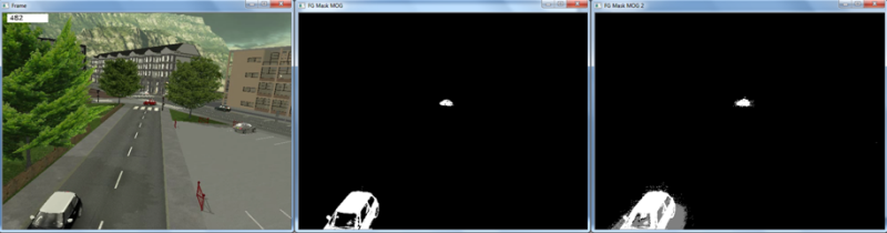 -# First, three Mat objects are allocated to store the current frame and two foreground masks, obtained by using two different BS algorithms. @code{.cpp} Mat frame; //current frame Mat fgMaskMOG; //fg mask generated by MOG method Mat fgMaskMOG2; //fg mask fg mask generated by MOG2 method @endcode -# Two @ref cv::BackgroundSubtractor objects will be used to generate the foreground masks. In this example, default parameters are used, but it is also possible to declare specific parameters in the create function. @code{.cpp} Ptr pMOG; //MOG Background subtractor Ptr pMOG2; //MOG2 Background subtractor ... //create Background Subtractor objects pMOG = createBackgroundSubtractorMOG(); //MOG approach pMOG2 = createBackgroundSubtractorMOG2(); //MOG2 approach @endcode -# The command line arguments are analysed. The user can chose between two options: - video files (by choosing the option -vid); - image sequences (by choosing the option -img). @code{.cpp} if(strcmp(argv[1], "-vid") == 0) { //input data coming from a video processVideo(argv[2]); } else if(strcmp(argv[1], "-img") == 0) { //input data coming from a sequence of images processImages(argv[2]); } @endcode -# Suppose you want to process a video file. The video is read until the end is reached or the user presses the button 'q' or the button 'ESC'. @code{.cpp} while( (char)keyboard != 'q' && (char)keyboard != 27 ){ //read the current frame if(!capture.read(frame)) { cerr << "Unable to read next frame." << endl; cerr << "Exiting..." << endl; exit(EXIT_FAILURE); } @endcode -# Every frame is used both for calculating the foreground mask and for updating the background. If you want to change the learning rate used for updating the background model, it is possible to set a specific learning rate by passing a third parameter to the 'apply' method. @code{.cpp} //update the background model pMOG->apply(frame, fgMaskMOG); pMOG2->apply(frame, fgMaskMOG2); @endcode -# The current frame number can be extracted from the @ref cv::VideoCapture object and stamped in the top left corner of the current frame. A white rectangle is used to highlight the black colored frame number. @code{.cpp} //get the frame number and write it on the current frame stringstream ss; rectangle(frame, cv::Point(10, 2), cv::Point(100,20), cv::Scalar(255,255,255), -1); ss << capture.get(CAP_PROP_POS_FRAMES); string frameNumberString = ss.str(); putText(frame, frameNumberString.c_str(), cv::Point(15, 15), FONT_HERSHEY_SIMPLEX, 0.5 , cv::Scalar(0,0,0)); @endcode -# We are ready to show the current input frame and the results. @code{.cpp} //show the current frame and the fg masks imshow("Frame", frame); imshow("FG Mask MOG", fgMaskMOG); imshow("FG Mask MOG 2", fgMaskMOG2); @endcode -# The same operations listed above can be performed using a sequence of images as input. The processImage function is called and, instead of using a @ref cv::VideoCapture object, the images are read by using @ref cv::imread , after individuating the correct path for the next frame to read. @code{.cpp} //read the first file of the sequence frame = imread(fistFrameFilename); if(!frame.data){ //error in opening the first image cerr << "Unable to open first image frame: " << fistFrameFilename << endl; exit(EXIT_FAILURE); } ... //search for the next image in the sequence ostringstream oss; oss << (frameNumber + 1); string nextFrameNumberString = oss.str(); string nextFrameFilename = prefix + nextFrameNumberString + suffix; //read the next frame frame = imread(nextFrameFilename); if(!frame.data){ //error in opening the next image in the sequence cerr << "Unable to open image frame: " << nextFrameFilename << endl; exit(EXIT_FAILURE); } //update the path of the current frame fn.assign(nextFrameFilename); @endcode Note that this example works only on image sequences in which the filename format is <n>.png, where n is the frame number (e.g., 7.png).