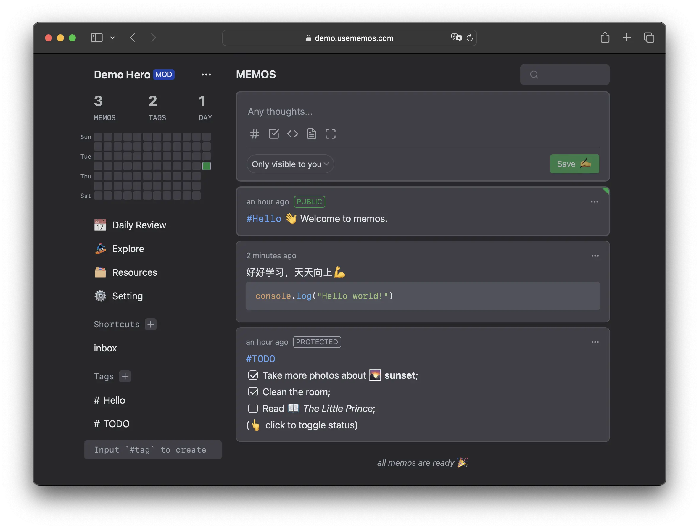 docker run -d --name memos -p 5230:5230 -v ~/.memos/:/var/opt/memos neosmemo/memos:latest